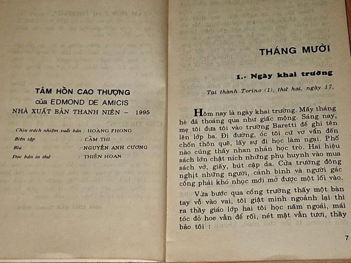 Tâm Hồn Cao Thượng - Edmond De Amicis ( Hà Mai Anh dịch ) - NXB THANH NIÊN 1996, 256 trang, khổ 10,5x18cm