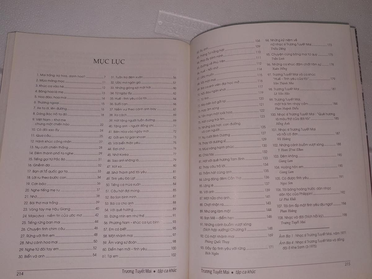 Trương Tuyết Mai tập ca khúc - NXB VĂN NGHỆ TP.HCM 2004, 216 trang, khổ 19x27cm . Sách in trên giấy couche , đẹp , bìa mềm có tay gấp .