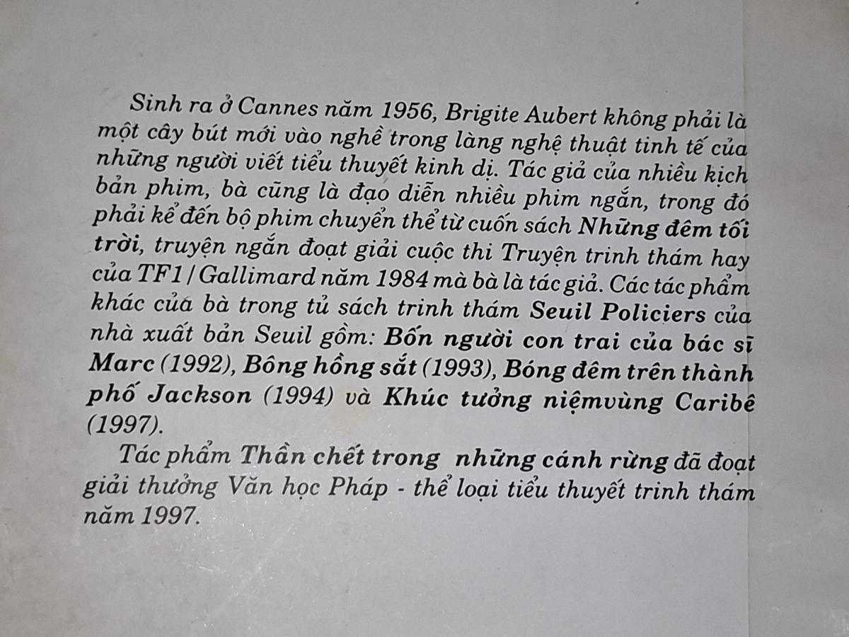 "Thần Chết Trong Những Cánh Rừng" là tiểu thuyết trinh thám hình sự rất nổi tiếng, được trao giải thưởng lớn dòng văn học trinh thám - hình sự Pháp năm 1997. Truyện đã được 18 nước trên thế giới mua tác quyền.