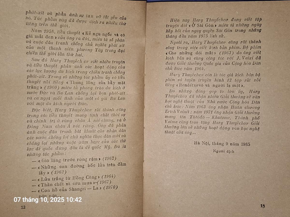 Tác giả: Hary Thuyếchcơ ( Hoàng Ánh dịch ) NXB: Tác Phẩm Mới 1986, 440 trang khổ 13x19cm . Gáy sách bị tróc chút, còn lại sách đẹp 60k