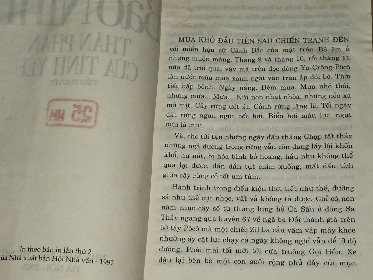 Thân phận của tình yêu ( Nỗi buồn chiến tranh ) - Bảo Ninh - NXB PHỤ NỮ 2003, 344 trang, khổ 13x19cm .