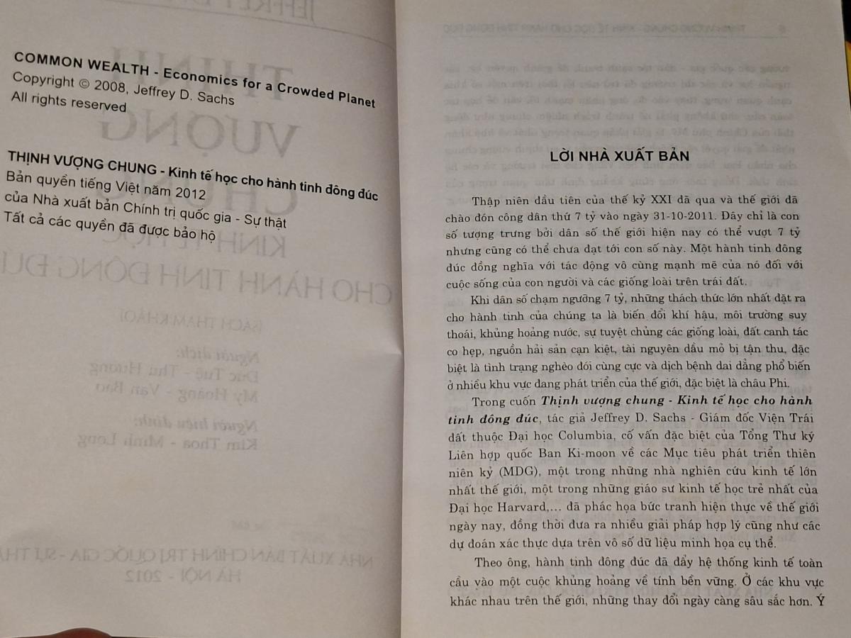 Thịnh Vương Chung kinh tế học cho hành tinh Đông Đức - Jefrey D. SACHS ( Đức Tuệ, Thu Hương, Mỹ Hoàng, Vạn Bảo dịch ) - NXB CHÍNH TRỊ QUỐC GIA SỰ THẬT 2012, 590 trang, khổ 14,5x20,5cm