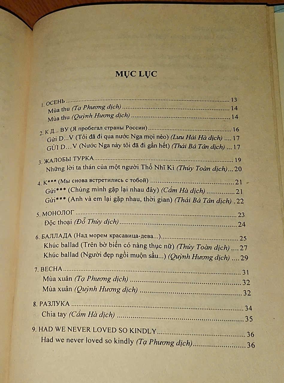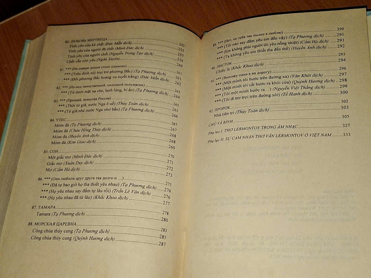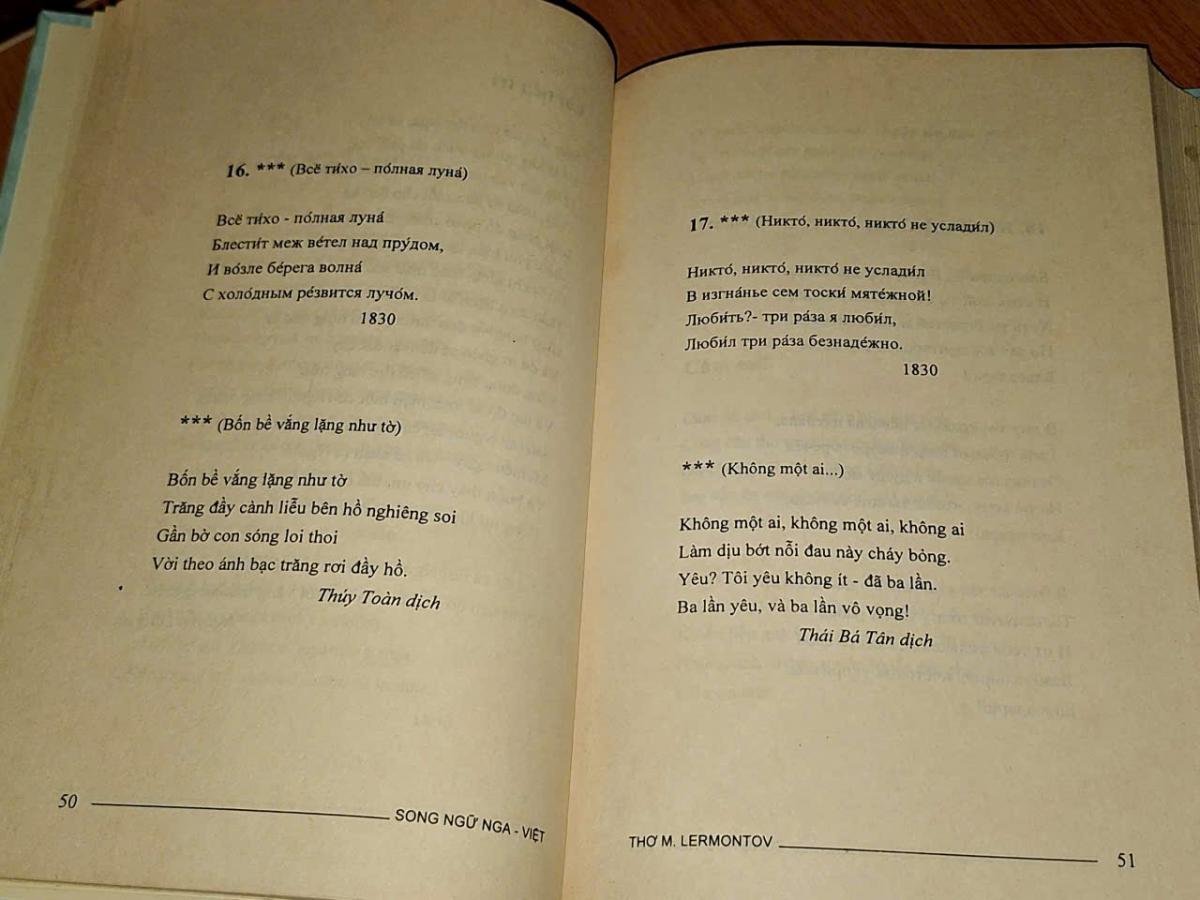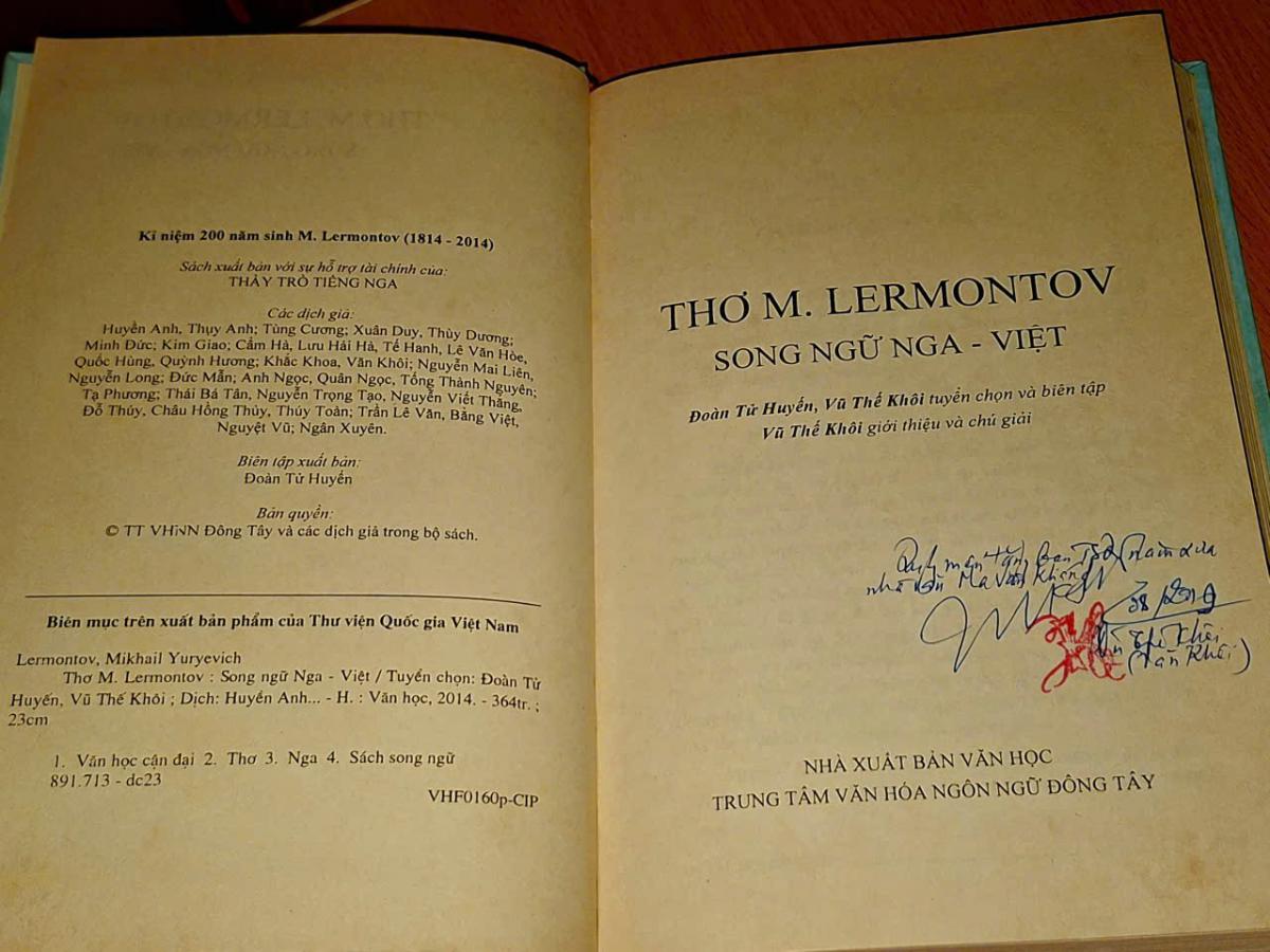 Thơ M. Lermontov ( Song ngữ Nga - Việt ) - Đoàn Tử Huyến & Vũ Thế Khôi tuyển chọn - NXB VĂN HỌC & TRUNG TÂM VĂN HÓA NGÔN NGỮ ĐÔNG TÂY 2015, 364 trang, khổ 16x24cm .