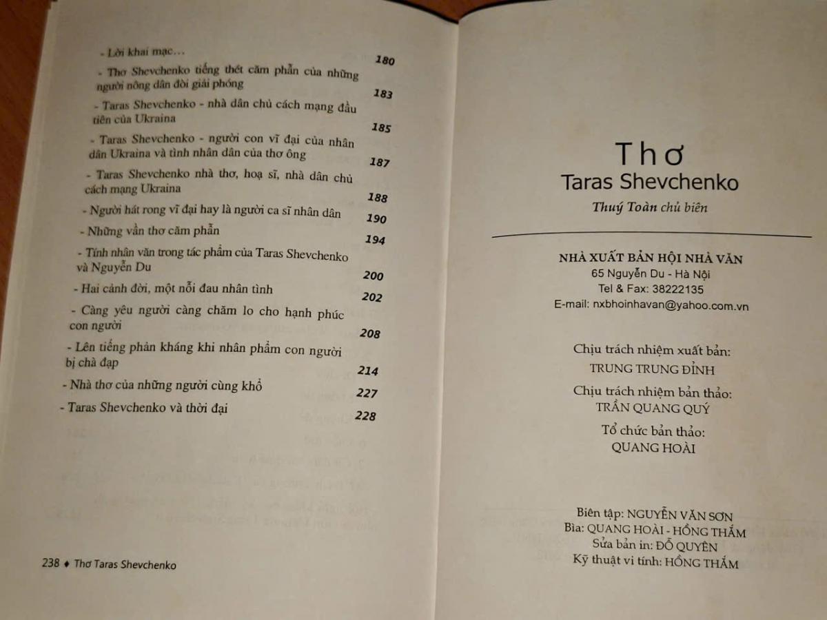 Thơ Taras Shevchenko - Thúy Toàn dịch - NXB HỘI NHÀ VĂN 2012, 240 trang, khổ 14,5x20,5cm