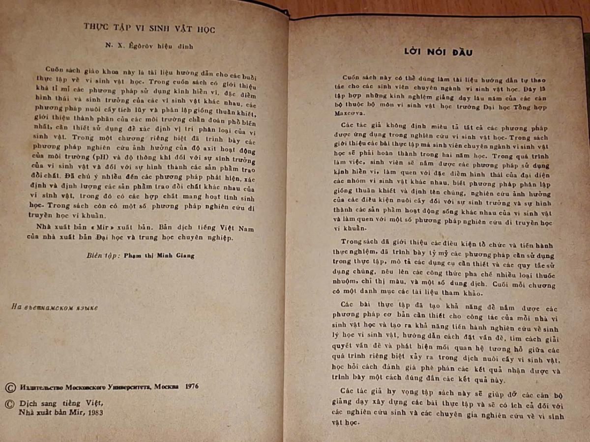 Thực tập vi sinh vật học ( bìa cứng ) - GS. N.X. ÊGÔRÔV ( Nguyễn Lân Dũng dịch ) - NXB MIR MATXCƠVA & NXB ĐẠI HỌC VÀ TRUNG HỌC CHUYÊN NGHIỆP 1983, 368 trang, khổ 16x24cm