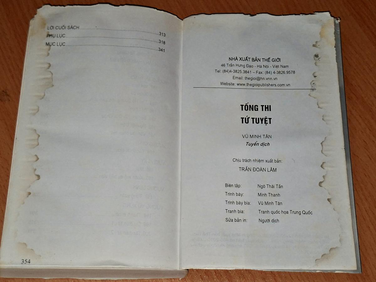 Sách bìa mềm, có tay gấp. Sách bị ố và nhấm góc phía trên một số trang cuối . Đầy đủ nội dung . Kèm nguyên văn chữ Hán