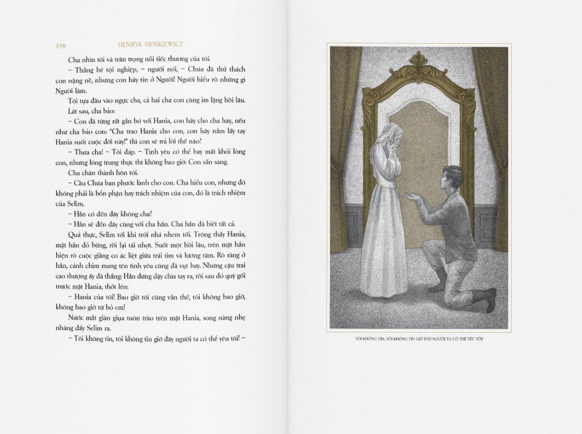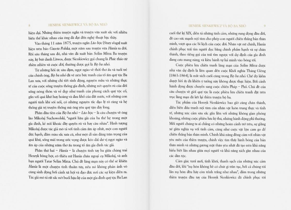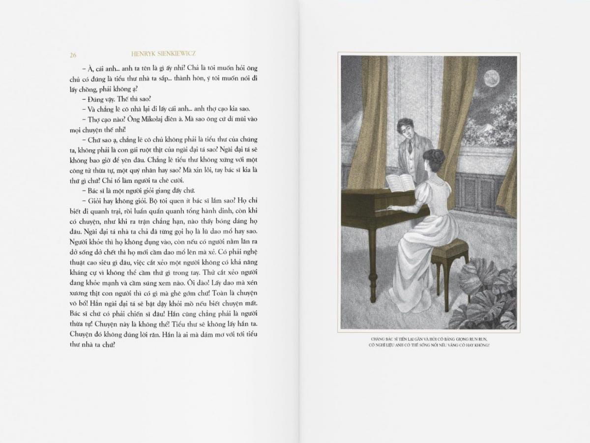 Tác phẩm được dịch giả Nguyễn Hữu Dũng chuyển ngữ từ nguyên bản tiếng Ba Lan. Ông cũng là người chuyển ngữ các tác phẩm khác của Sienkiewicz là Quo Vadis, Hiệp sĩ Thánh Chiến, Trên sa mạc và trong rừng thẳm. Bộ ba nhỏ do họa sĩ Triệu Yến Vi minh họa, hi vọng mang lại cho bạn đọc Việt Nam một ấn bản trang nhã, giàu giá trị thưởng lãm, đồng thời lưu giữ trọn vẹn vẻ đẹp cổ điển, tinh tế của tác phẩm.