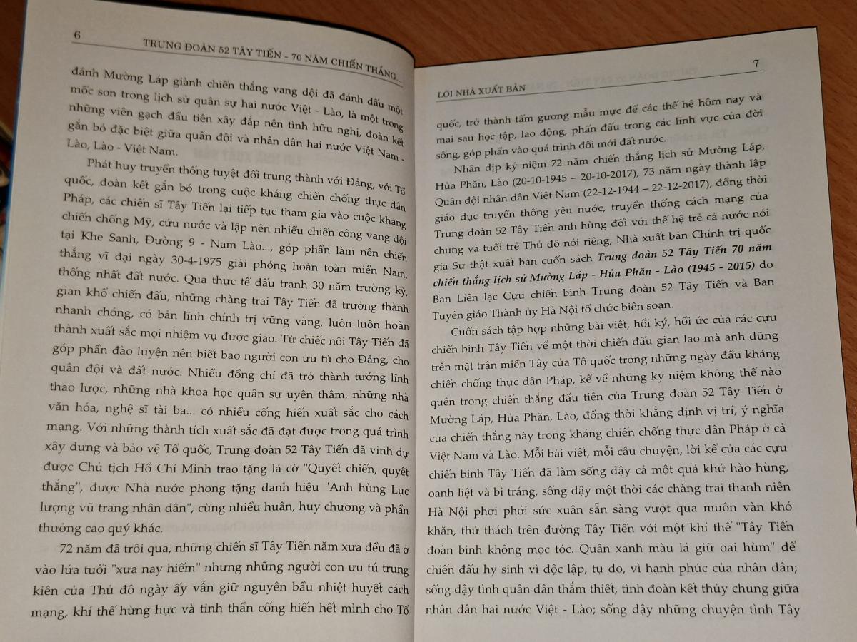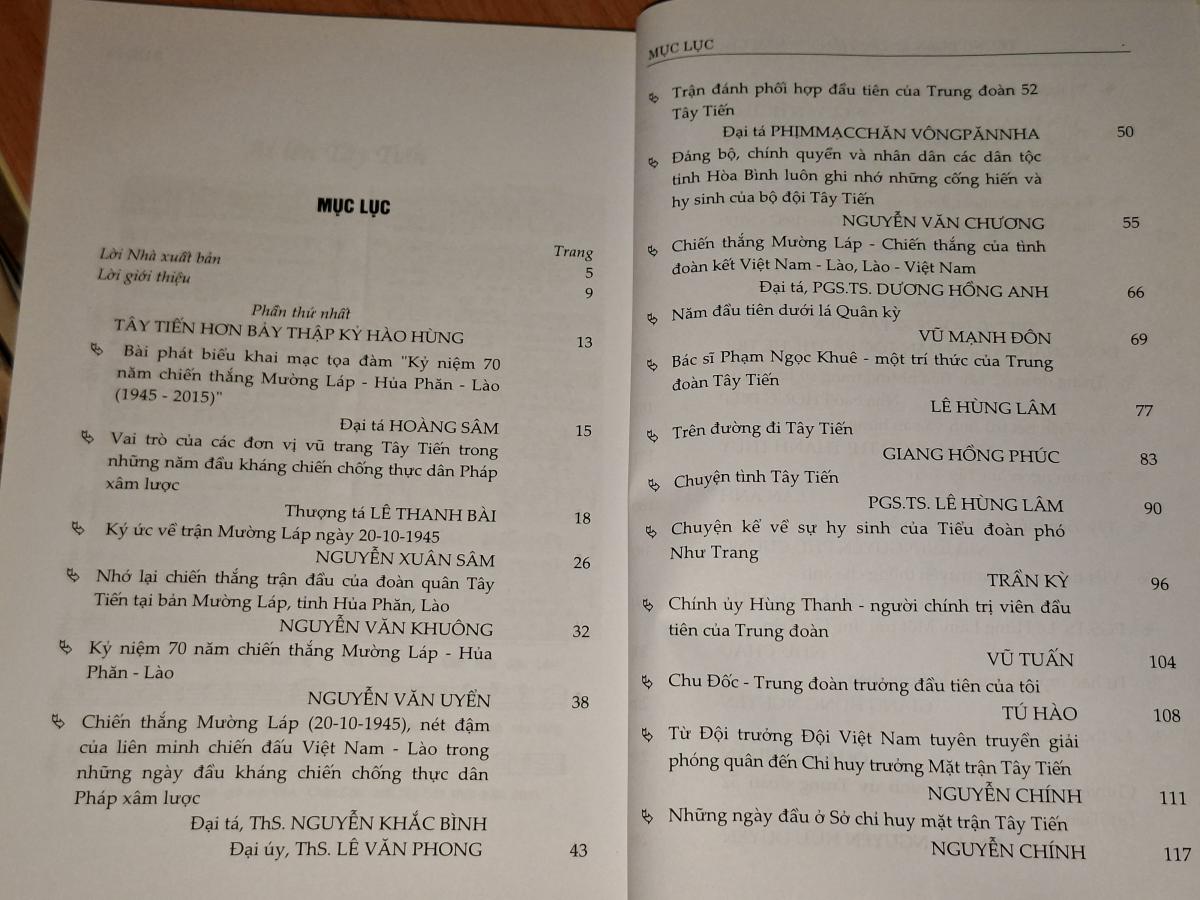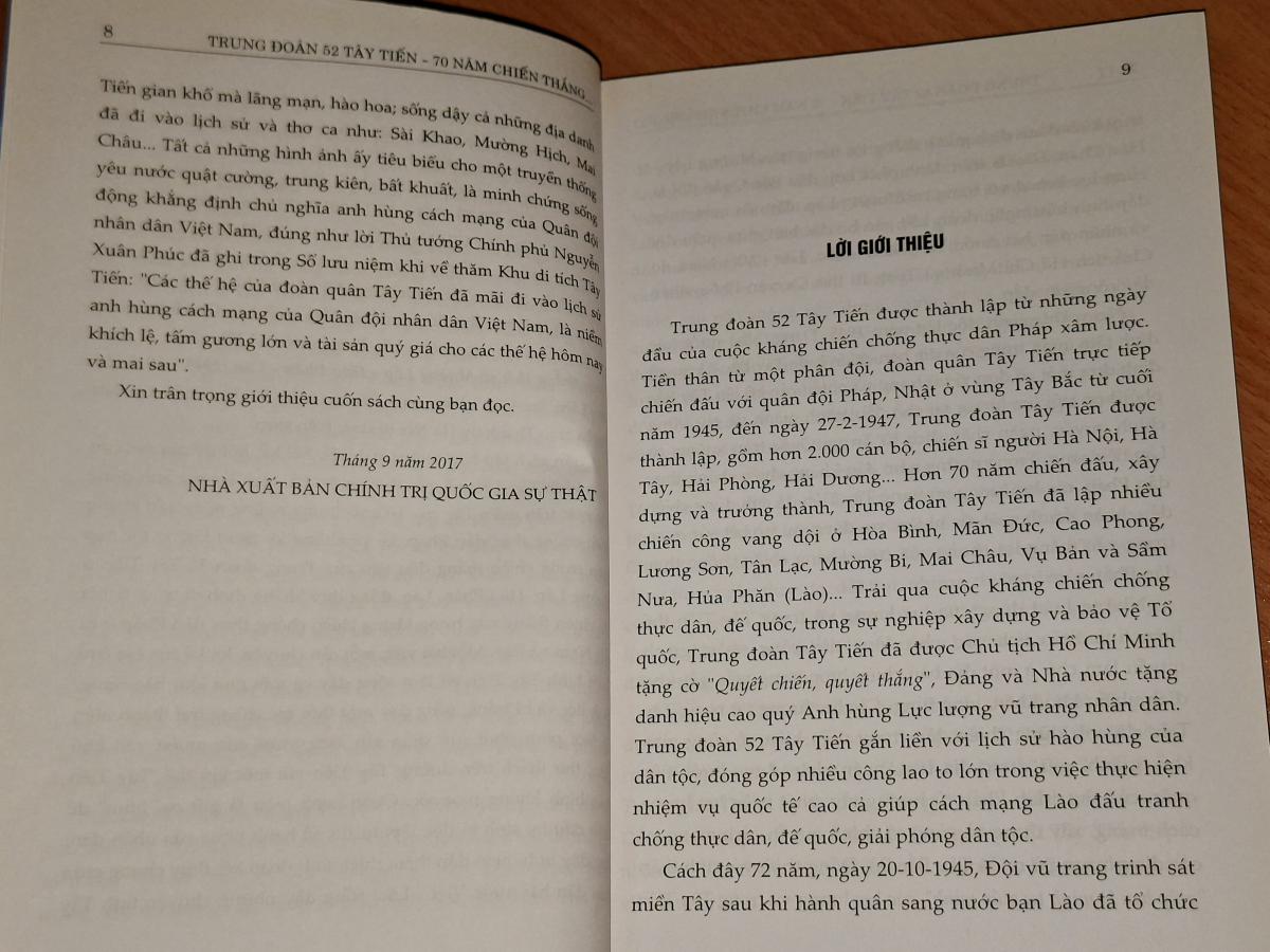 Trung đoàn 52 Tây Tiến : 70 năm chiến thắng lịch sử Mường Láp - Hủa Phăn - Lào 1945-2015  - NXB CHÍNH TRỊ QUỐC GIA SỰ THẬT 2017, 320 trang, khổ 16x24cm