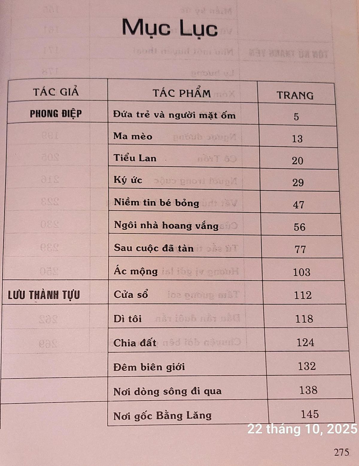 Truyện ngắn ba tác giả trẻ ( Phong Điệp, Lưu Thành Tự, Tôn Nữ Thanh Yên ) - NXB VĂN HỌC 2005 , 276 trang, khổ 14,5x20,5cm.