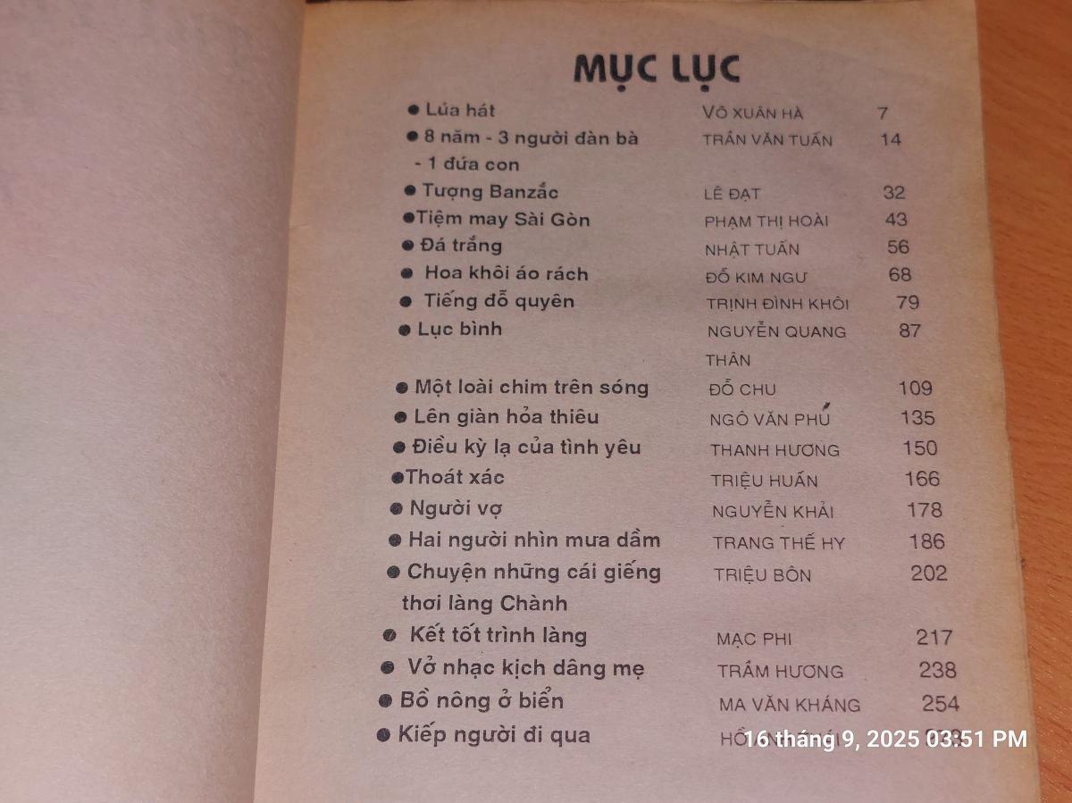 NXB: Văn Học - Tuần Báo Văn Nghệ 1994, 291 trang, khổ 13x19cm . Sách tốt. Nhiều truyện ngắn hay . 40k