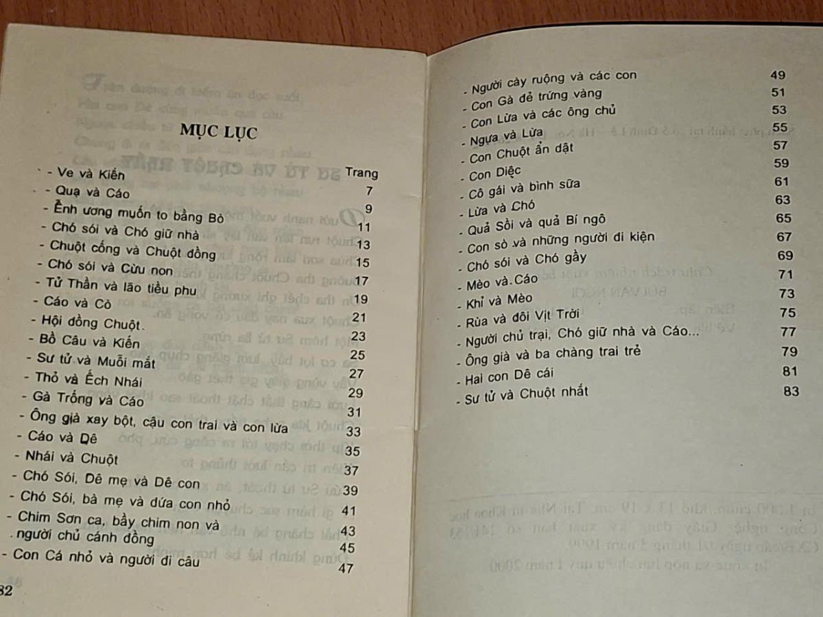 Truyện ngụ ngôn La Fontaine - Văn Qua chọn dịch - NXB THANH NIÊN 2000, 84 trang, khổ 13x19cm