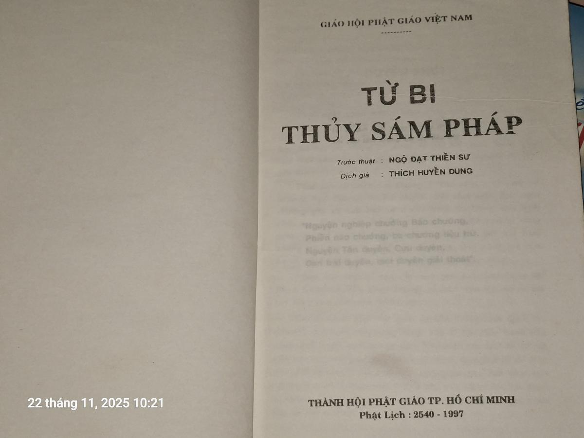 Từ Bi Thủy Sám Pháp  - Ngô Đạt thiền sư ( Thích Huyền Dung dịch ) - Thành hội Phật Giáo TP.HCM 1997, 184 trang, khổ 16x24cm.