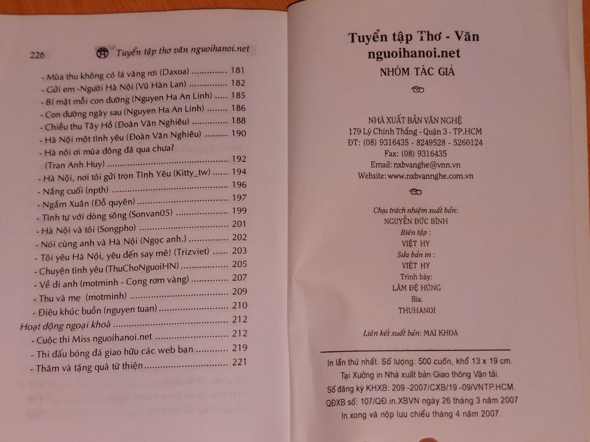Tuyển tập thơ văn nguoihanoi.net
