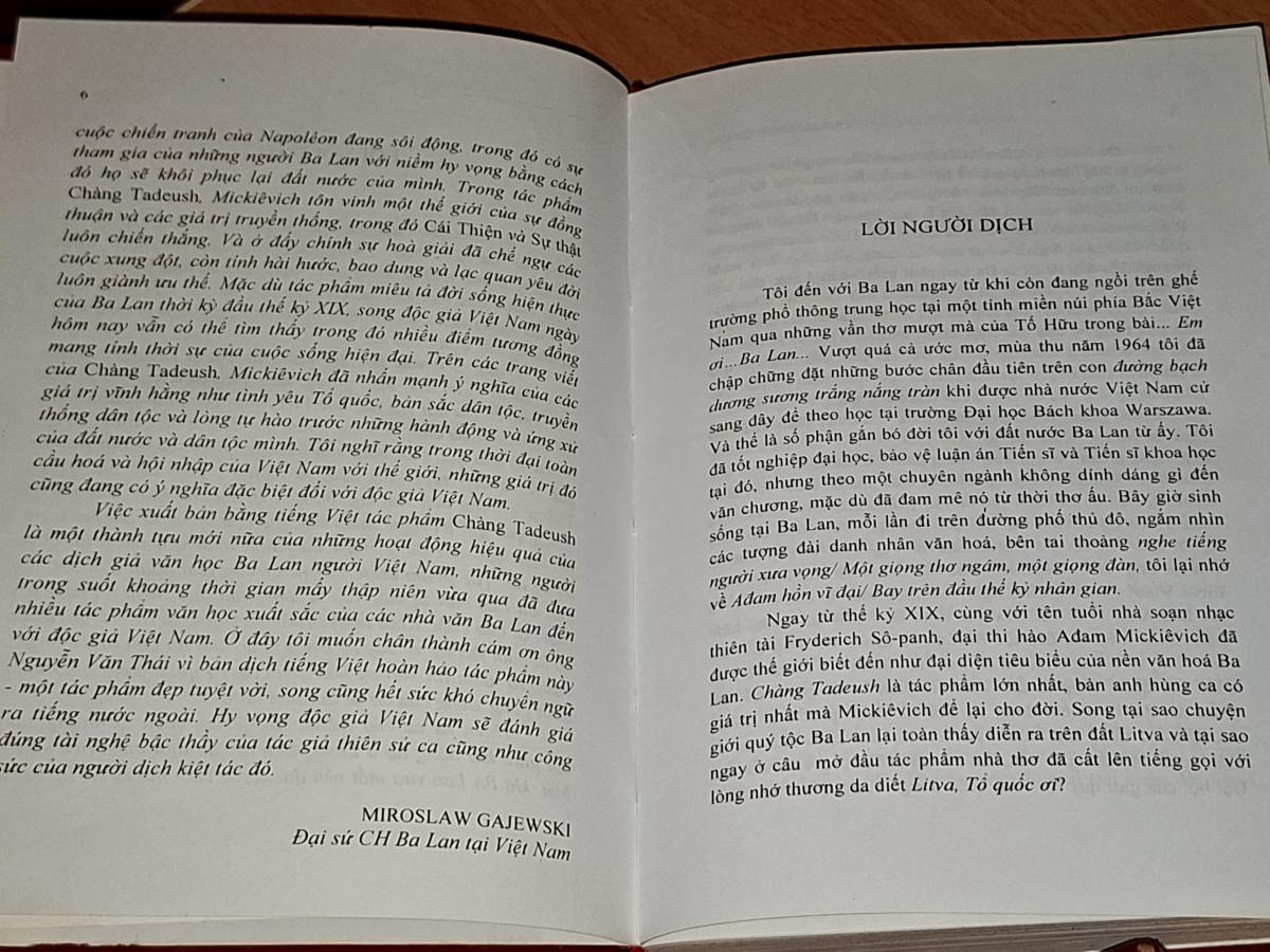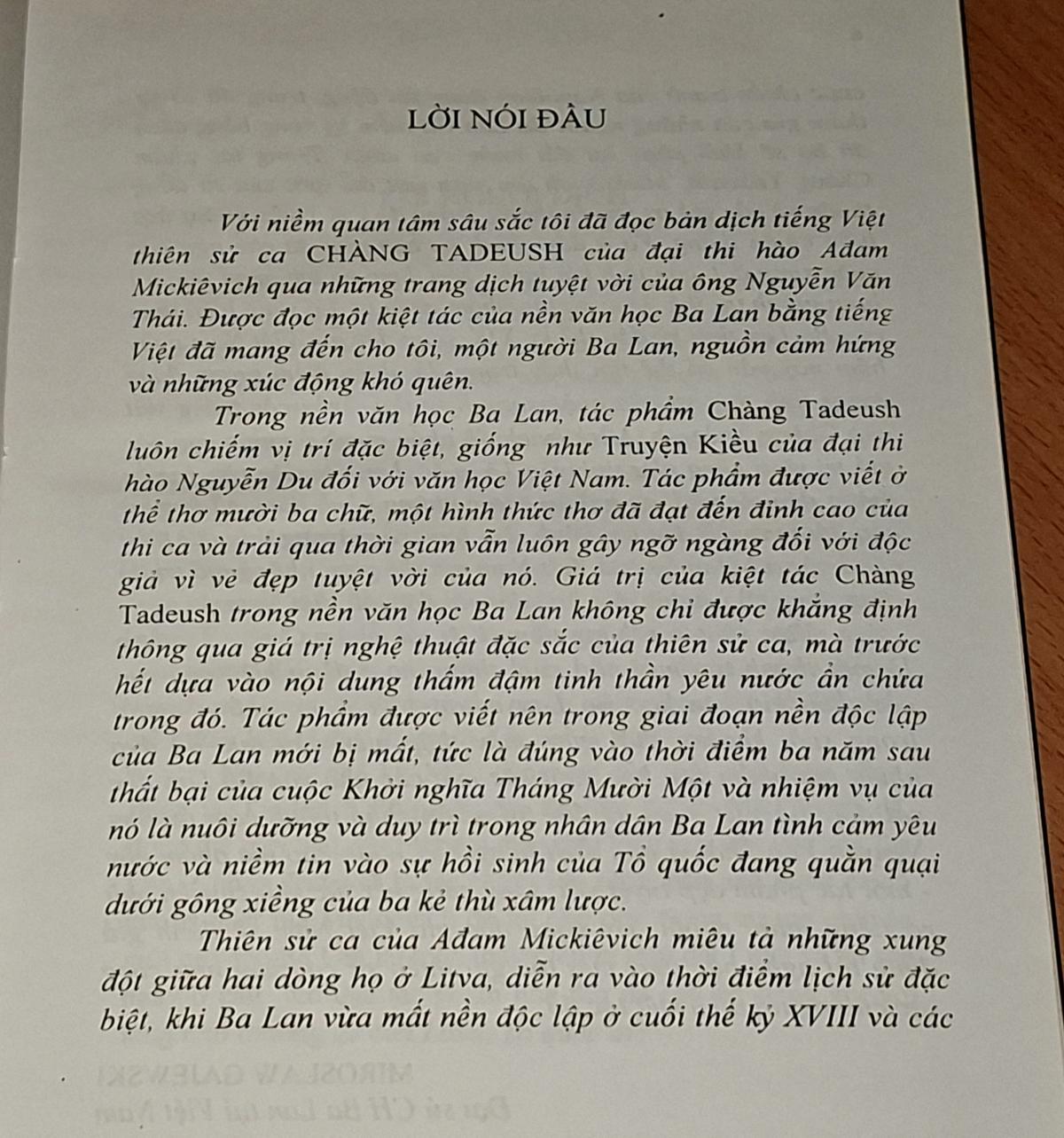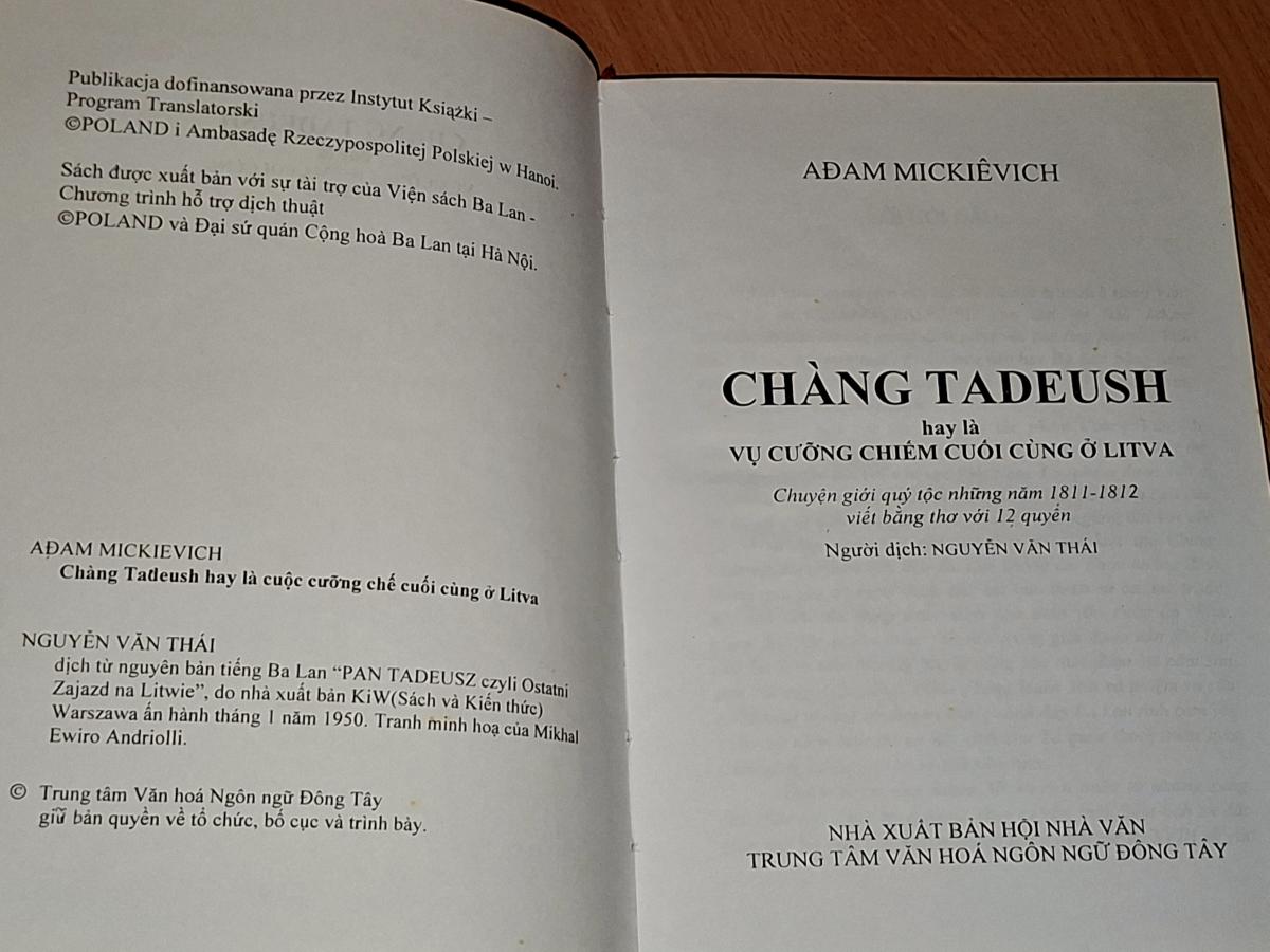 Chàng Tadeush hay là vụ cưỡng chiếm cuối cùng ở Litva - Adam Mickievich ( Nguyễn Văn Thái dịch ) - NXB HỘI NHÀ VĂN & TRUNG TÂM VĂN HÓA NGÔN NGỮ ĐÔNG TÂY 2008, 536 trang, khổ 14,5x20,5cm.