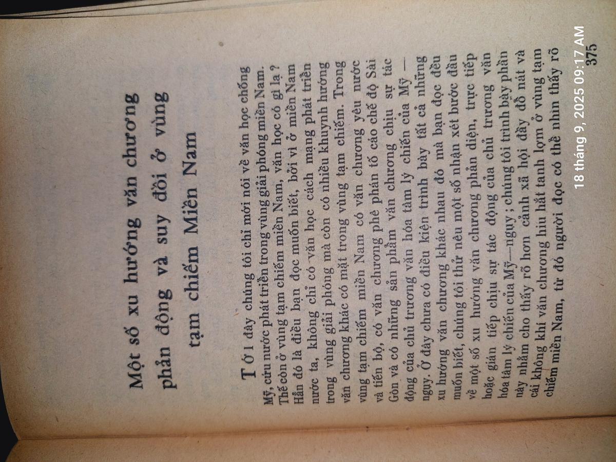 NXB: Đại Học Và Trung Học Chuyên Nghiệp 1976, 462 trang ,khổ 13x19cm Bìa gáy hơi sờn, ruột tốt. Nhiều bài viết về Văn học miền Nam thời Mỹ Ngụy 180k