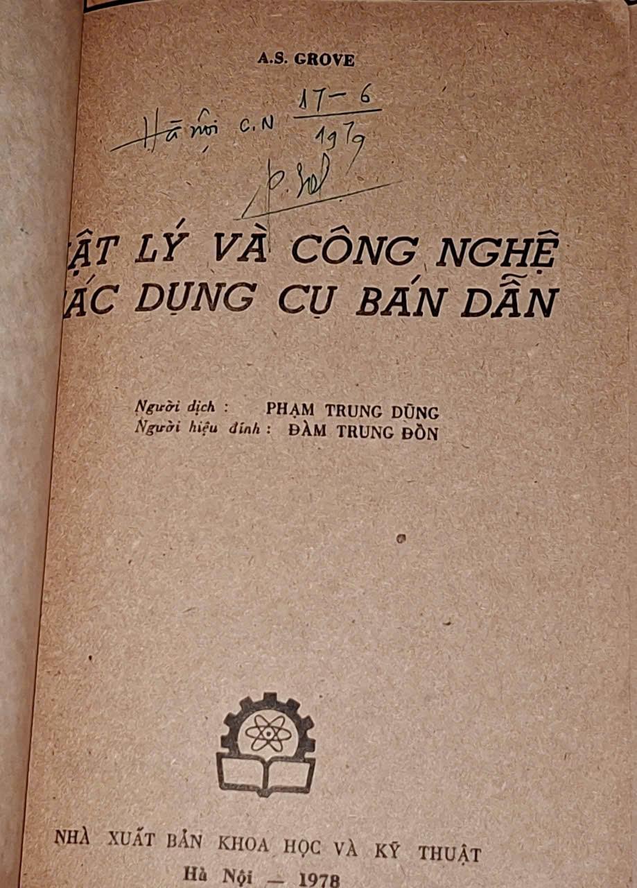 Vật lý và công nghệ các dụng cụ bán dẫn - A.S Grove ( Phạm Trung Dũng dịch ) - NXB KHOA HỌC & KỸ THUẬT 1978, 372 trang, khổ 14,5x20,5cm .