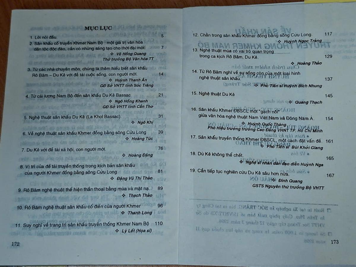 Về sân khấu truyền thống Khmer Nam Bộ - SỞ VHTT TỈNH SÓC TRĂNG & PHÂN VIỆN VĂN HÓA NGHỆ THUẬT VN TẠI TP.HCM 1998, 174 trang, khổ 14,5x20,5cm.