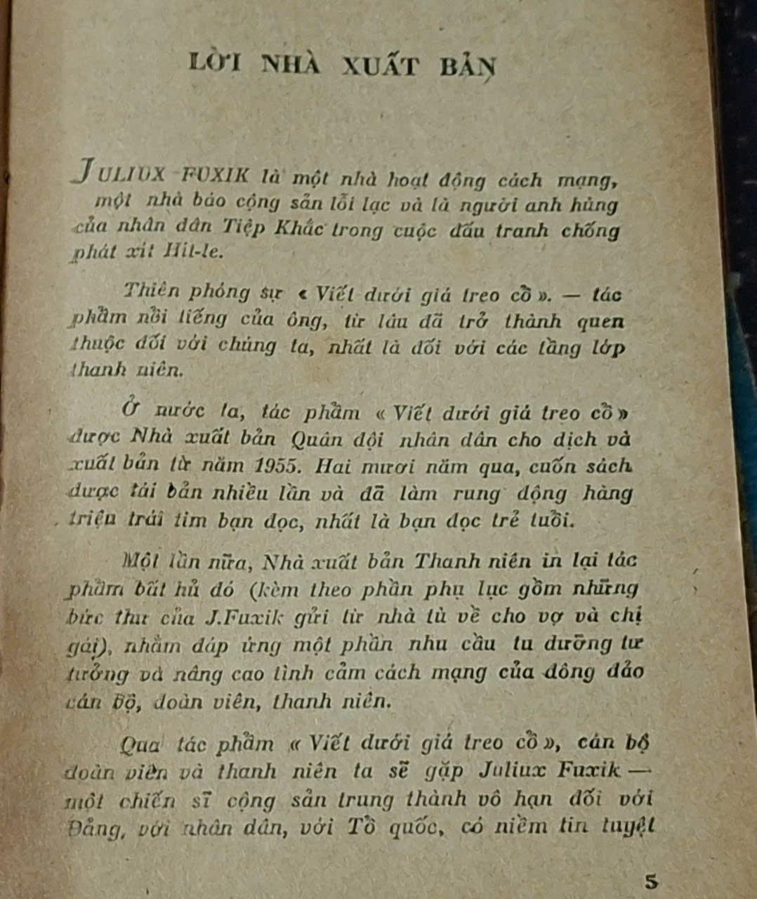 Viết dưới giá treo cổ - Julius Fucik ( Phạm Hồng Sơn, Dương Tất Từ dịch ) - NXB THANH NIÊN 1975, 168 trang, khổ 10,5x18,5cm