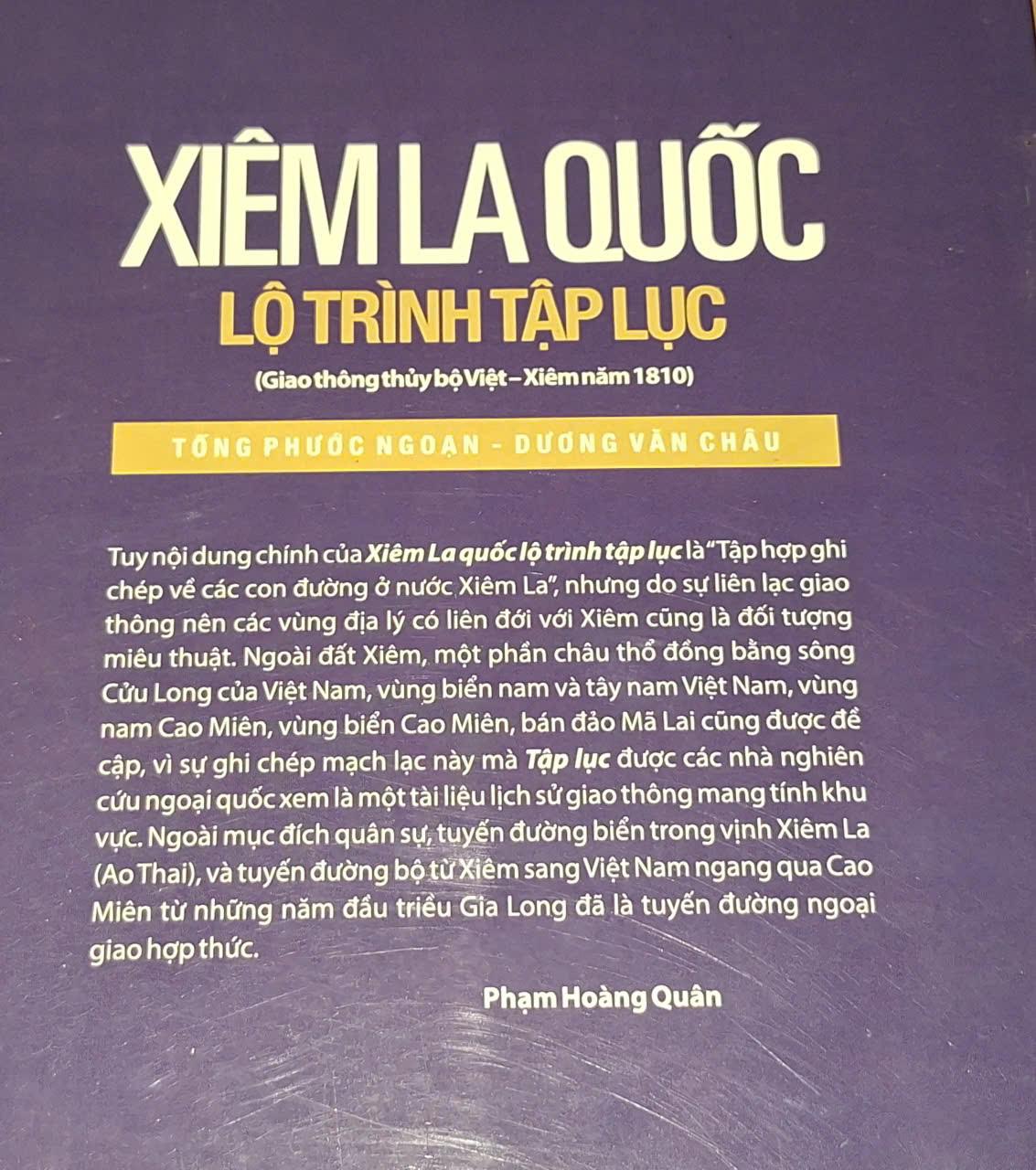 Xiêm La Quốc lộ trình tập lục ( Giao thông thủy bộ Việt - Xiên năm 1810 ) - Tống Phước Ngoạn , Dương Văn Châu ( Phạm Hoàng Quân dịch, chú và giới thiệu ) - NXB VĂN HÓA VĂN NGHỆ 2017, 256 trang, khổ 16x24cm